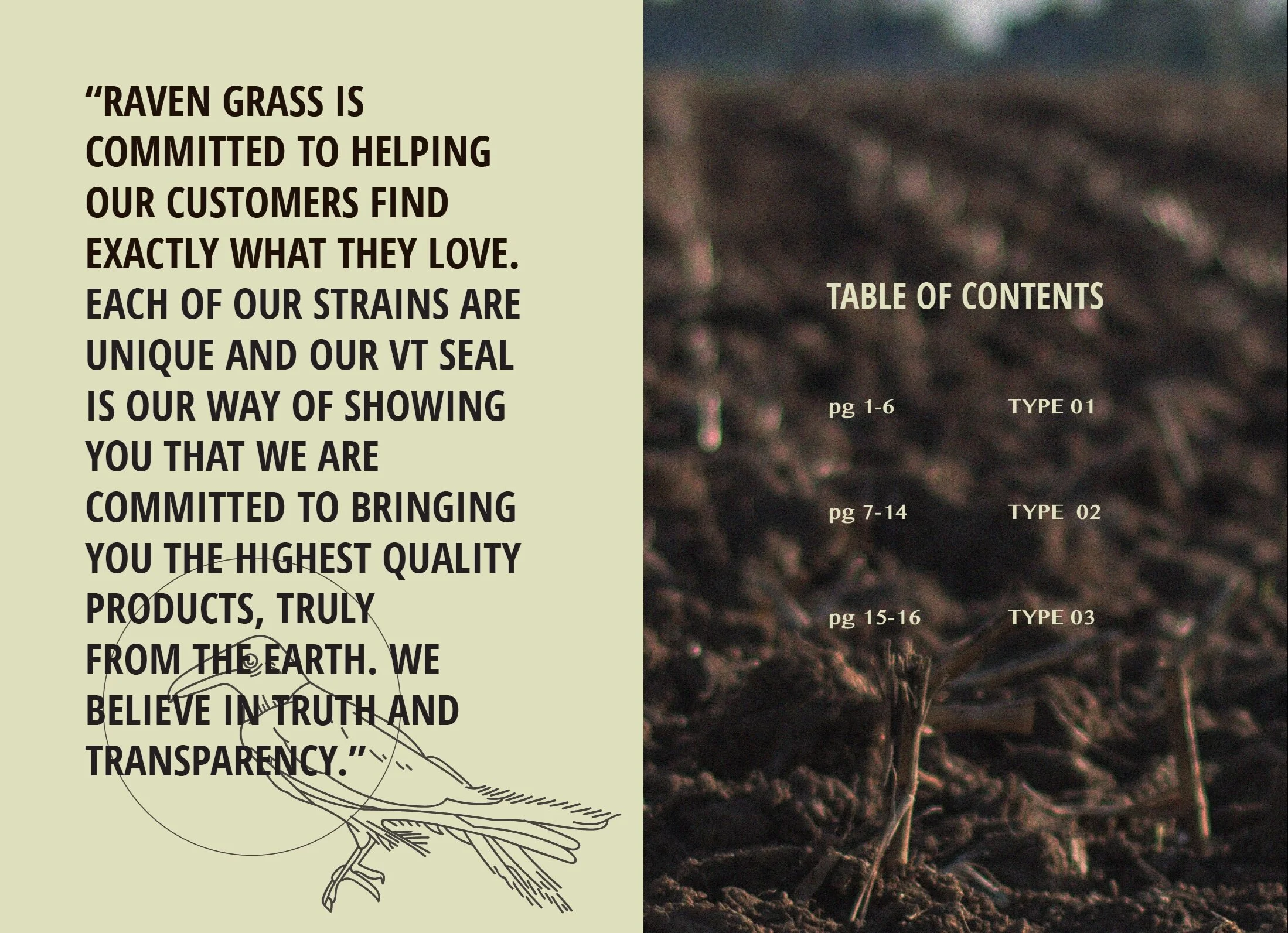 This branding campaign is for a company called Raven Grass, a cannabis company based in Seattle, WA. Raven Grass’s main focus is to grow the highest quality cannabis and be transparent about how they do it. This project is meant to highlight just that. All while keeping the natural and organic feel that Raven Grass does with their products and how they grow their cannabis.